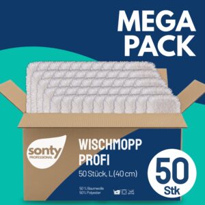 Je nach Wahl: 5 Stück oder 50 Stück Sonty Profi Baumwoll-Wischbezüge (in 40 cm oder 50 cm).