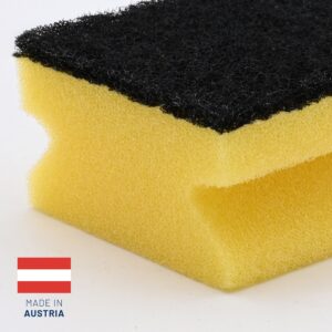 Gefertigt in Österreich aus formstabilem Schaumstoff. Der Schwamm ist bei 60 °C waschbar, bleibt geruchsarm und ist für den dauerhaften Einsatz in Profi-Küchen ausgelegt.