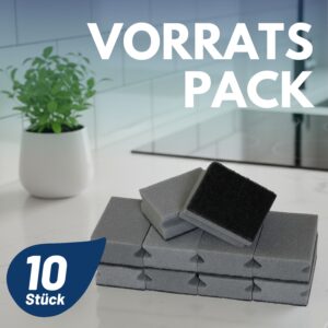 Anwendung: Nutzen Sie die schwarze Seite ausschließlich für unempfindliche Materialien (z. B. Gusseisen, Edelstahl, Grillroste). Die helle Schaumseite ist ideal für allgemeines Geschirr und glatte Oberflächen.
